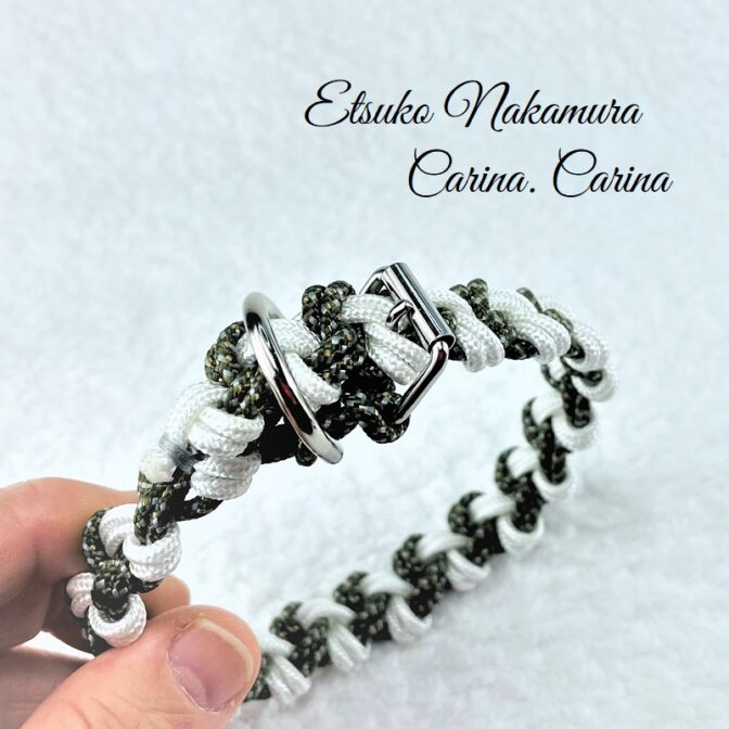 [キット]パラコードマクラメ編み#5 白とまだら色の犬猫首輪No20