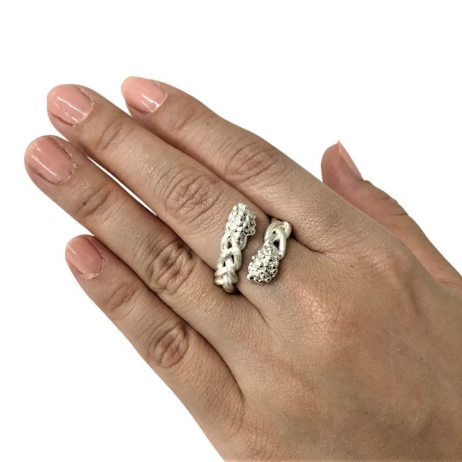 ブドウの房のようなトップのシルバーフリーサイズリングです。