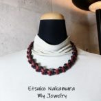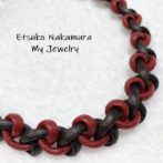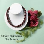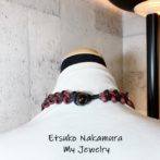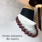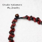 ワインカラーとブラックの2色使いの、マクラメ編みネックチョーカーです。
