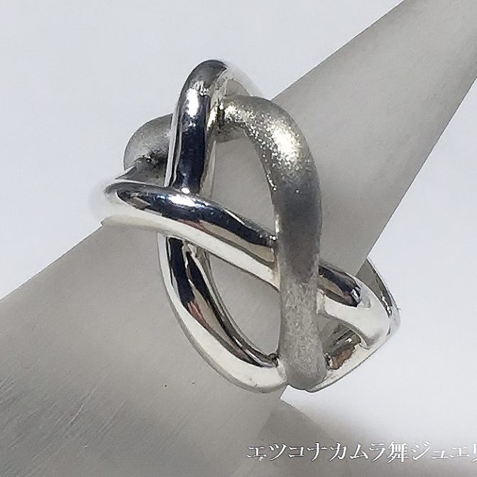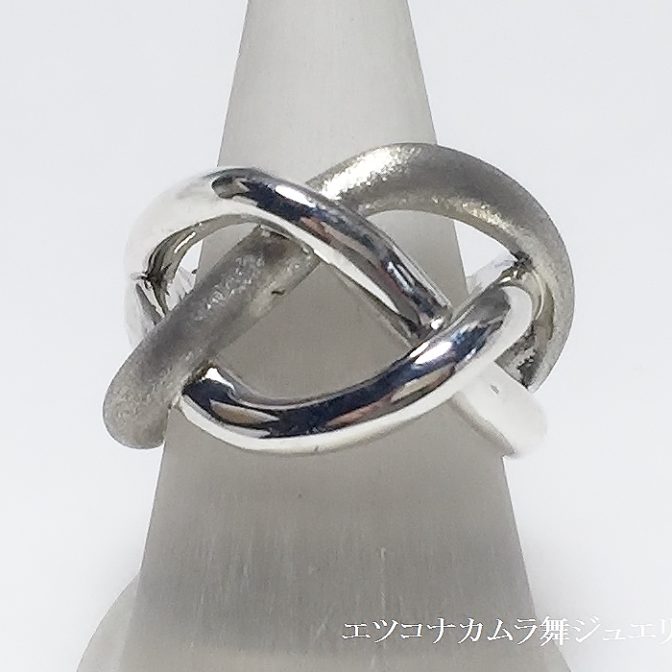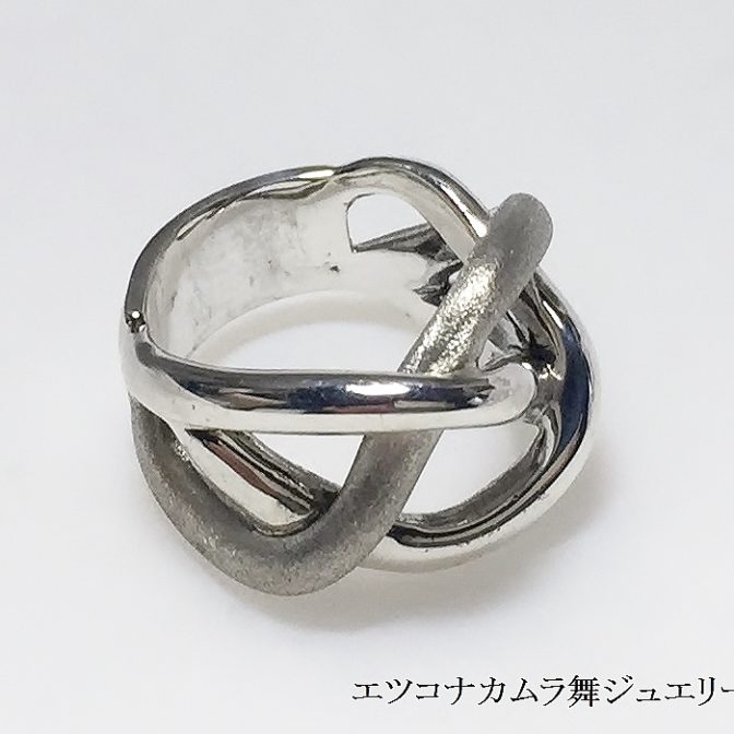 デザインらしい、ミツ編みのデザインリングです。