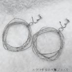 シルバー甲丸線1.5mmx0.8mmで寸法をバラつかせた五連リングを束ねた、大きめな輪のイヤリングです。