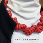 赤一色の二本取りの、マクラメ編みネックチョーカーです。