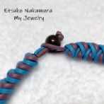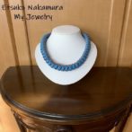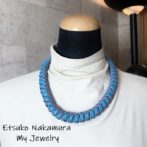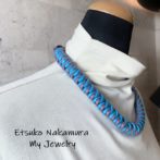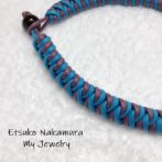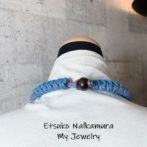スカイブルー&レーズンの2色の、マクラメ編みネックチョーカーです。