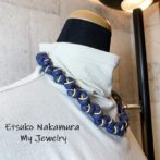 藍&イエローの2色の、マクラメ編みネックチョーカーです。