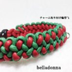 綿100%ロープ赤とグリーンののマクラメ編みの犬首輪