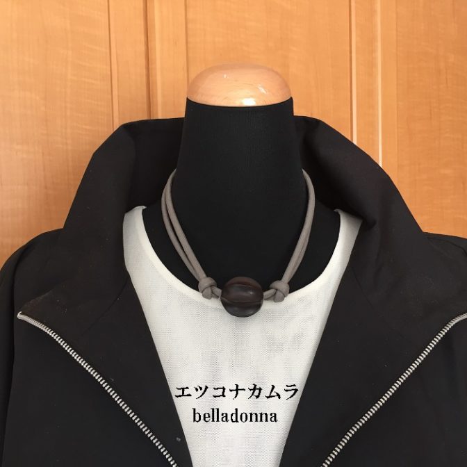 ウッド玉とグレーロープ チョーカー&ロングネック