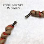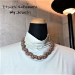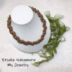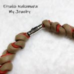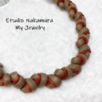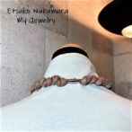 モカと赤の2色使いの、マクラメ編みネックチョーカーです。