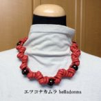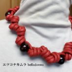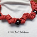 赤一色の二本取りの、マクラメ編みネックチョーカーです。