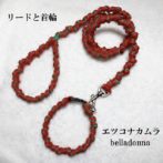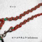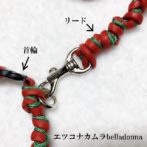 綿100%ロープの赤とナイロンのグリーンの首輪とリードとの組み合わせ。